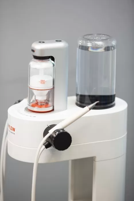 Профессиональная чистка зубов выходит на новый уровень с Air Flow Prophylaxis Master — новейшая разработка швейцарского бренда EMS, представленная теперь и в нашей стоматологической клинике.