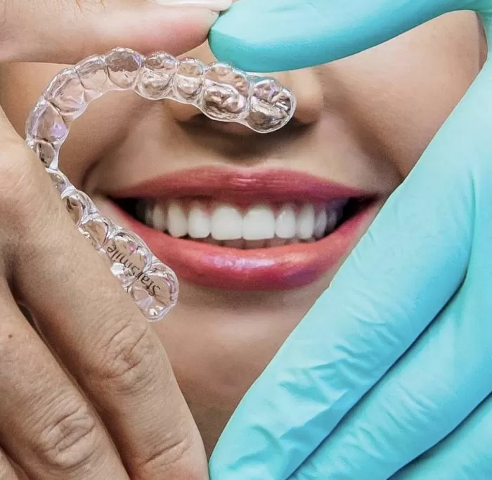 Элайнеры — это съемные ортодонтические капы из упругого прозрачного полимерного материала. Главное преимущество элайнеров — высокая степень эстетики. Они выпускаются комплектами по несколько десятков штук. Каждую пару кап носят примерно две недели, потом надевают новый комплект. Пациент может самостоятельно снимать и надевать конструкцию, что позволяет облегчить гигиену полости рта, избежать дискомфорта во время еды. Подробнее об эффективности коррекции прикуса элайнерами, об их преимуществах и недостатках, о том, кому подходит этот метод исправление прикуса, а кому нет, рассказывает стоматолог-ортодонт нашей клиники Ксения Васильевна Симонова в статье «Элайнеры — современное решение проблемы неправильного прикуса».